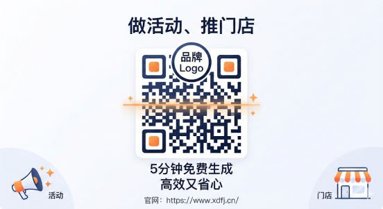 做活动、推门店要做带logo的品牌化二维码,还在纠结找工具、调样式耗半天?别愁!用二维码生成器(官网:https://www.xdfj.cn/),5分钟就能免费生成专业品牌化二维码,完美适配门店推广、活动引流等全场景,高效又省心!