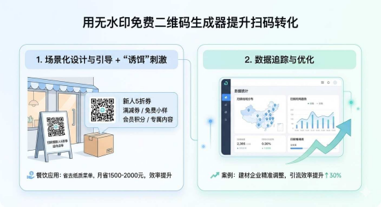 在门店入口、产品包装等高频触点铺设无水印二维码,搭配10字内明确引导文案,比如“扫码领新人5折券”;还可以设置即时利益(如满减券、免费小样)或长期留存福利(如会员积分、专属内容),双管齐下提升用户扫码意愿。
